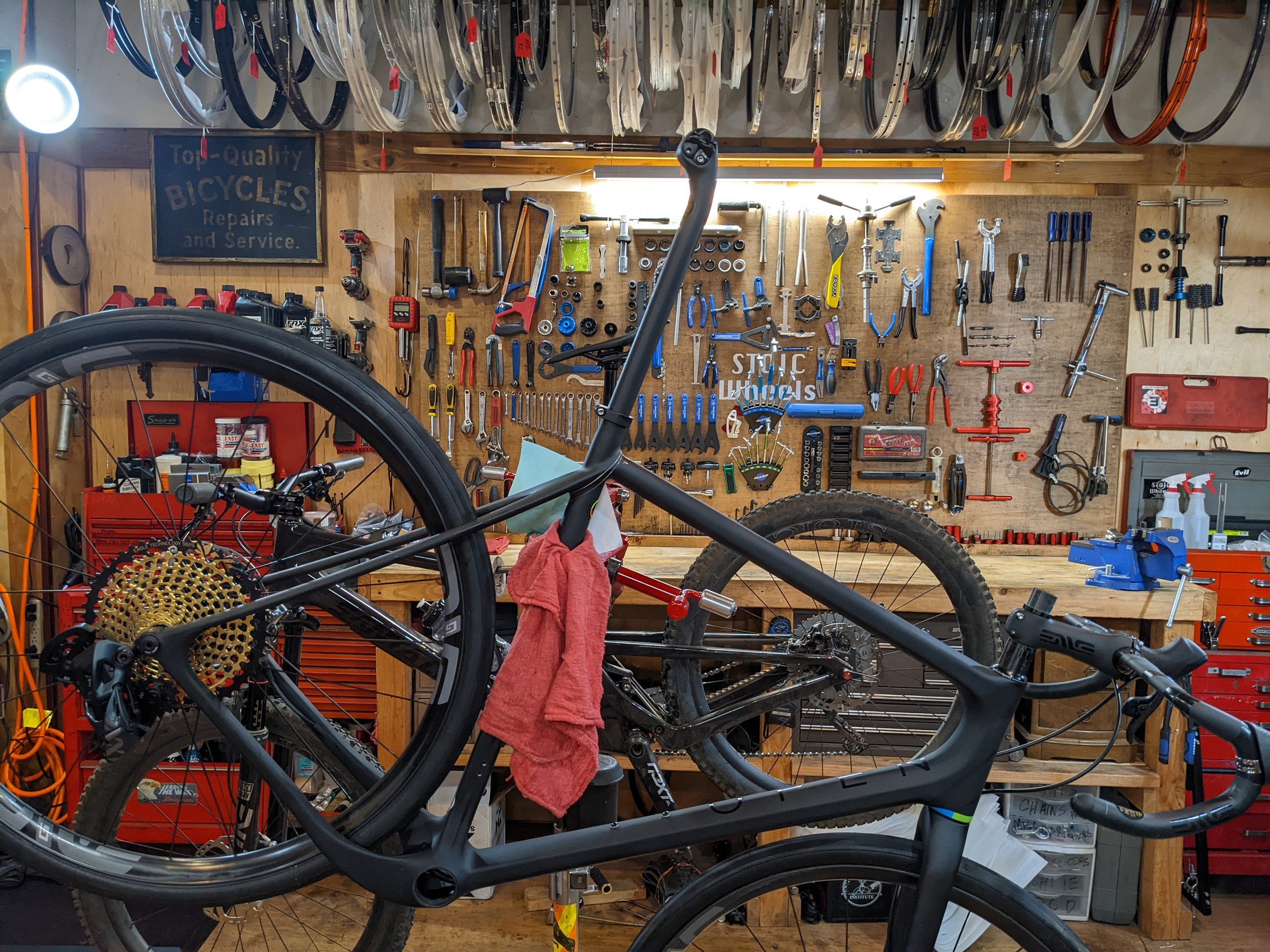 Stoic Wheels specializes in wheel building, but is also very proficient in many other facets of the bike and its accessories. Below is a list of some of the other services and their respective prices. The shop is a problem solving space, and no matter what the issue is, I am sure that it can be solved at Stoic Wheels.